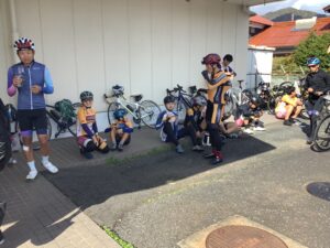 16 11月 快晴の中 Posted at 19:52h in jr-blog, ブログ by jrsport 0 Comments 0 Likes Share 令和7年11月15日、16日は徳地方面のロード練習でした。 往復約70㌔のロード練です。 A(中学生)、B(小学生)、C(初心者)チームに分けて防府市サイクリングターミナルを出発します。 松柄峠のタイムトライアルではセービング等実業団チームの爆牽きもあり好タイムが出ました。 快晴の中、苦しくも気持ち良く楽しく走れました。 頑張った後はお楽しみの徳地丸久でのモグモグタイムです。